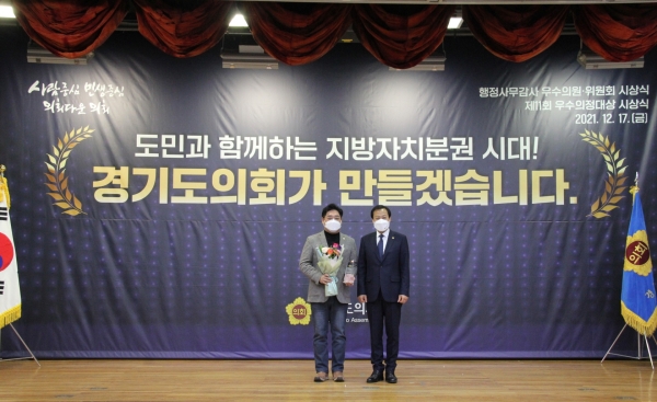 한편 ‘우수의정대상’은 대한민국시도의회의장협의회가 매년 지방자치 발전 및 주민들의 삶의 질 향상에 기여하고 활발한 의정활동을 펼친 광역의원에게 수여하는 상으로 올해는 코로나-19 확산 방지를 위해 각 시·도의회에서 개별적으로 시상식을 진행했다.