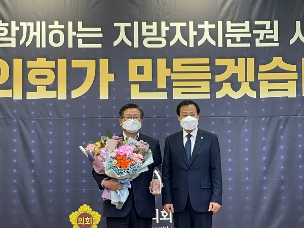 이번 의정대상은 대한민국시도의회의장협의회가 엄격한 심사를 거쳐 능동적이고 선제적인 의정활동으로 지역사회 발전과 주민의 삶의 질 향상에 기여한 지방의원에게 시상하는 상이다.