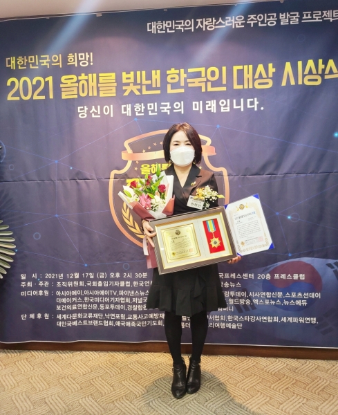 [충청뉴스큐] 경기도의회 교육행정위원회 부위원장 권정선 의원이 17일 한국프레스센터에서 개최된 ‘2021 올해를 빛낸 한국인 대상’에서 의정발전 부문 대상을 수상했다.