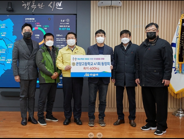 [충청뉴스큐] 온양고등학교 제41회 동창회가 지난 17일 아산시를 방문해 흑미 400kg를 전달했다.