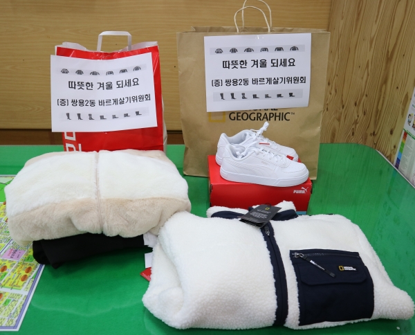 [충청뉴스큐] 천안시 쌍용2동 바르게살기위원회는 지난 17일 지역 내 저소득 아동과 청소년들에게 브랜드 운동화 및 겨울 점퍼 등을 전달했다.
