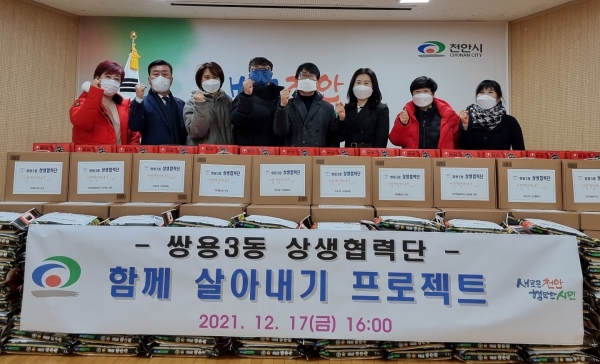 [충청뉴스큐] 천안시 쌍용3동 상생협력단은 지난 17일 지역 내 어려운 이웃을 돕기 위한 ‘함께 살아내기 프로젝트’의 일환으로 백미, 라면, 김을 전달했다.