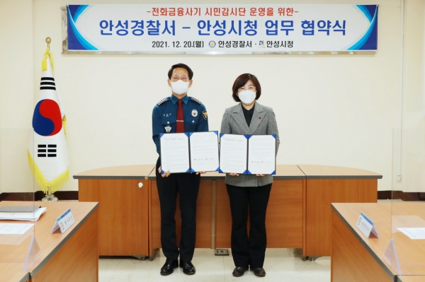 [충청뉴스큐] 안성시가 안성경찰서와 안전한 지역사회 및 치안 환경 조성을 위해 관내 전화금융사기피해 예방 및 근절을 위한 시민감시단 운영 업무협약식을 가졌다.