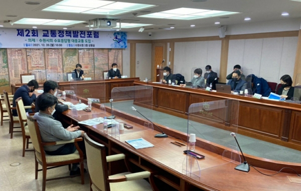 [충청뉴스큐] 수원시는 20일 시청 상황실에서 ‘제2회 교통발전정책 포럼’을 열고 ‘수요응답형 교통수단’ 도입 방안을 논의했다.