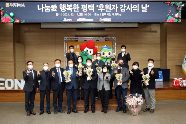 정장선 시장은 “코로나바이러스 악화로 행사가 축소되어 많은 후원자분들을 초대하지 못해 아쉽지만 평택시민을 위해 나눔을 실천해주신 후원자분들에게 감사드린다”며 “앞으로도 평택시의 나눔 문화를 활성화해 살기 좋은 행복한 평택을 만들 수 있도록 노력하겠다”고 전했다.
