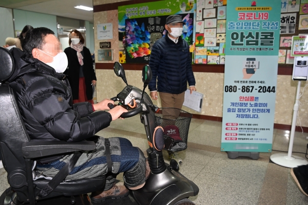 투표소 주변 경사로 존재 여부, 투표소 입구 경사로 설치 여부, 복도·통로 너비, 승강기·장애인 전용 화장실 설치 여부 등을 살펴본다.