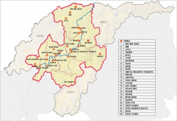 2020년 7월 유네스코 인증을 받은 한탄강 세계지질공원은 포천, 연천, 철원 등 총면적이 1,165.6㎢에 달하며 지질학적 특성이 우수한 장소인 ‘지질명소’도 비둘기낭폭포, 차탄천 주상절리 등 26개다.
