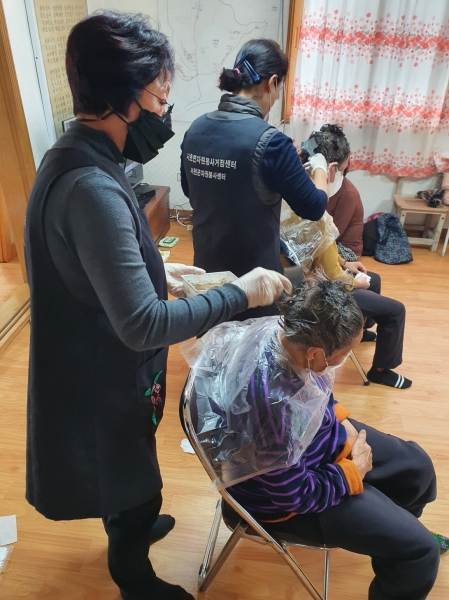 ‘다함께 어울림’행사는 지역사회보장협의체와 주민자치위원회 위원들의 염색 재능기부로 진행되는 마을복지사업으로 거동이 불편한 어르신들을 우선으로 지원한다.