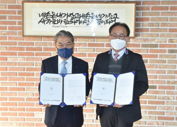 [충청뉴스큐] 경기도교육청과 경기도교원단체총연합회가 22일 수원 광교헌 서봉재에서 2021년 교섭·협의 조인식을 가졌다.