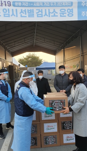 이에 안성시 공도읍 ‘함께하는교회’에서는 교인들이 직접 준비한 크리스마스 카드와 간식을 전달하며 격려의 마음을 전했다.