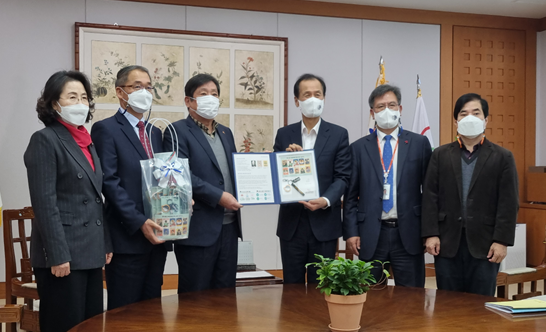 이날 증정식에서 최문순 강원도지사는 대한결핵협회 강원도지부 황 철 지부장에게 2021년도 크리스마스-씰을 증정받고 결핵 환자 퇴치를 위한 성금을 전달했다.