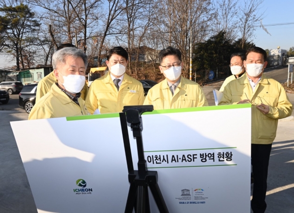 이번 현장 방문은 최근 경기 이천과 인접한 강원과 충북지역 야생멧돼지에서 ASF가 발생했고 지난달 이천 복하천 야생조류 분변에서 고병원성 AI가 검출된 만큼, 방역 태세를 한층 더 강화하기 위한 것이다.
