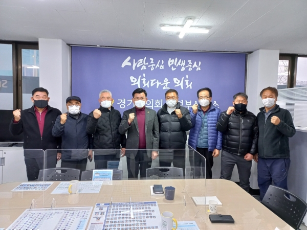 [충청뉴스큐] 경기도의회 건설교통위원회 권재형 부위원장은 지난 21일 경기도의회 의정부상담소에서 의정부시 개인택시 운송사업조합 권혁준 조합장, 하시영 사무국장, 운영위원 등과 함께 개인택시 사업 발전을 위해서 다양한 의견을 나누는 정담회 시간을 가졌다.