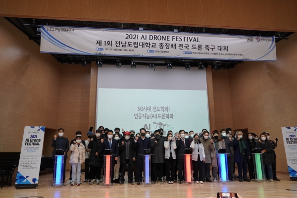 [충청뉴스큐] 전남도립대학교는 제1회 총장배 전국드론축구대회 및 AI 드론 페스티벌을 열어 4차 산업혁명 시대 드론산업과 인공지능을 융합한 ‘AI 드론산업’ 인력 양성 비전을 선포했다.