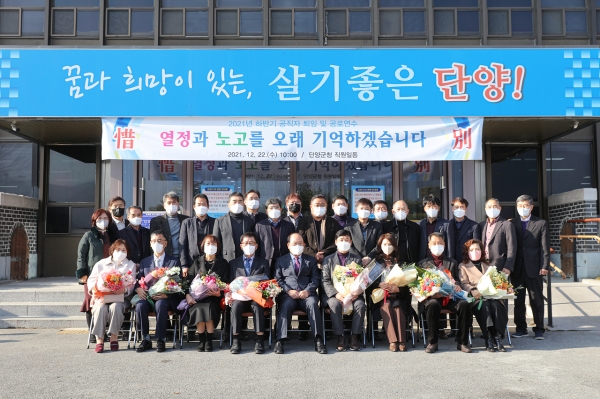 지난 22일 군은 지역 발전을 위해 헌신한 김기영, 이기성, 이은범, 박봉주, 허주열 등 공직자들의 퇴임 및 이임식이 군수실에서 진행됐다고 밝혔다.