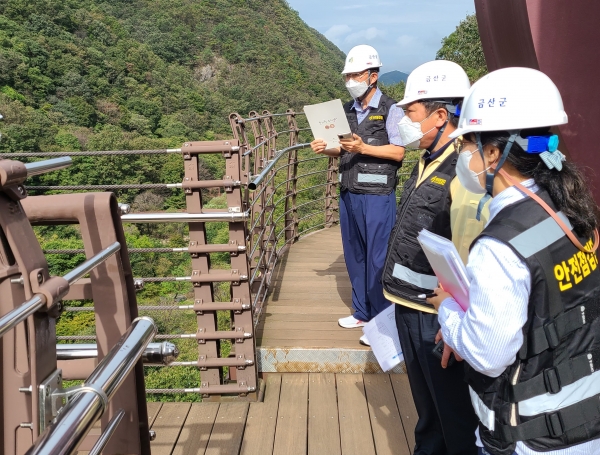 모든 시설 점검은 민·관 합동을 통해 전문성을 강화했고 육안 점검이 어려운 출렁다리, 산사태 취약지역 등 2곳은 드론을 활용했다.