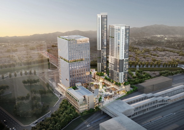 계룡건설 팀은 에너지 성능을 고려한 환경친화적 주거동과 지식산업센터 등 건축물을 제시하고 복합환승체계를 위한 교통광장, 도시재생 방안과 주변 시설을 연계한 데크 계획을 비롯해 모든 시설이 연결되는 지상 3층 데크광장 조성으로 지역 상징성을 구현한다는 계획이라고 전했다.