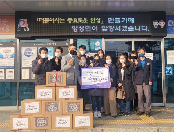 [충청뉴스큐] 지난 21일 함께하는교회에서 연말 양성면 소외계층을 위해 100만원 상당의 식료품 꾸러미 ‘Love Sharing Box’ 30상자를 기부했다.