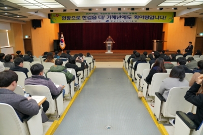 농업기술원은 4일 시군농업기술센터 기술보급업무담당자 90여명이 모인 가운데 ‘2019년도 신기술보급 시범사업 지침 설명회’를 개최하고, 사업별 추진요령과 핵심기술 등을 설명했다.