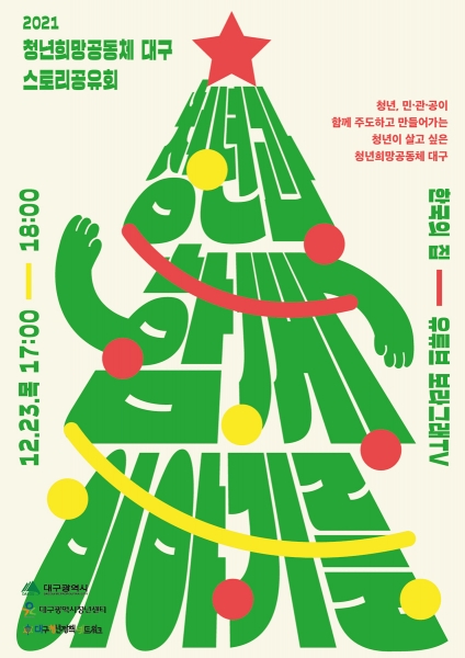 [충청뉴스큐] 대구시와 대구청년센터, 대구청년정책네트워크는 12월 23일 오후 5시부터 ‘한국의 집’에서 ‘2019년 청년희망공동체 대구 선언’의 의미를 되새기며 청년을 중심으로 민과 관이 함께 만들어가는 변화의 스토리를 공유하고 확산하기 위해 ‘2021년 청년희망공동체 대구 스토리 공유회’를 개최한다.