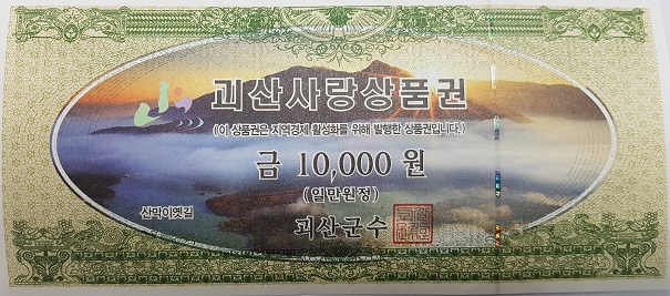 한편, 괴산군은 괴산사랑상품권을 1996년 4월 1만원권 1종 발행을 시작했으며, 이번에 새롭게 제작한 상품권도 1만원권 1종으로 발행된다.