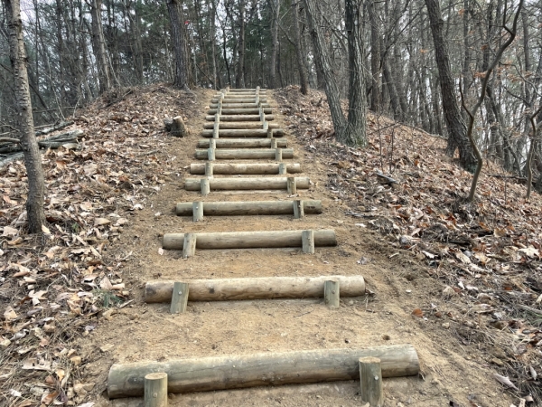 또 12월에는 동천교회~배방산성 구간 정비를 통해 경사면이 높은 등산로에 통나무 계단 408단을 교체 및 설치했고 이용객들의 안전을 위해 노후화된 안전로프를 새로 교체했다.