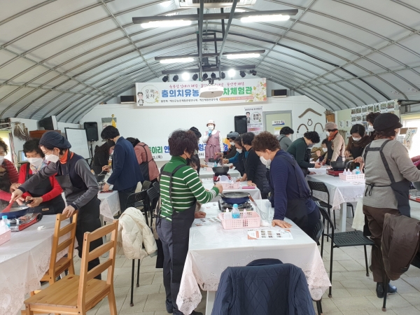 [충청뉴스큐] 예산군농업기술센터는 지난 23일 덕산면 ‘충의치유농원’에서 우리음식 동아리 30여명이 참석한 가운데 ‘우리음식동아리 연말총회 및 체험교육’을 실시했다.