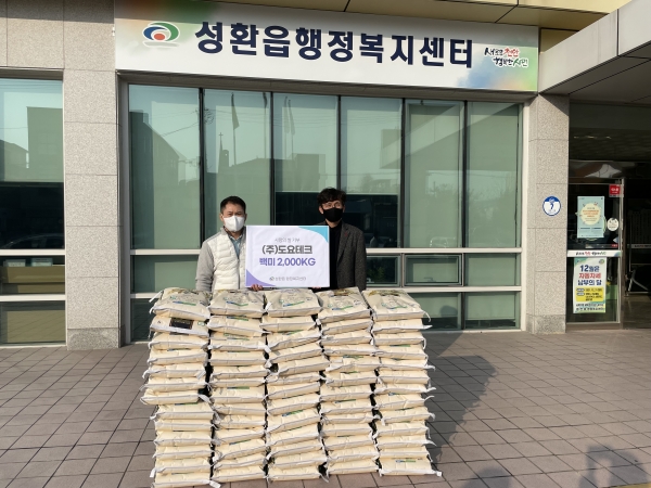 [충청뉴스큐] 천안시 성환읍은 지역 내 소재한 반도체 부품가공업체인 주식회사 도요테크가 지난 23일 연말을 맞아 어려운 이웃에게 전해달라며 쌀 200포를 기탁했다고 밝혔다.