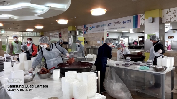 [충청뉴스큐] 평택남부노인복지관은 지난 22일 오전9시부터 GS건설의 후원으로 코로나19 극복을 위한 팥죽 4,000그릇을 만들어 나눠드리는 행사를 진행했다.