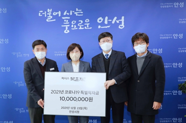 [충청뉴스큐] 지난 23일 퍼시스 목훈재단이 안성시에 1천만원의 장학증서를 전달했다.