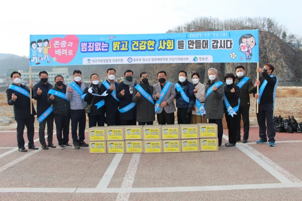 [충청뉴스큐] 대구지방검찰청의성지청과 법무부청소년범죄예방위원의성지역협의회은 2021.12.24. 청송 지역민을 대상으로 청송지구 주관으로 범죄예방 캠페인을 실시했다.