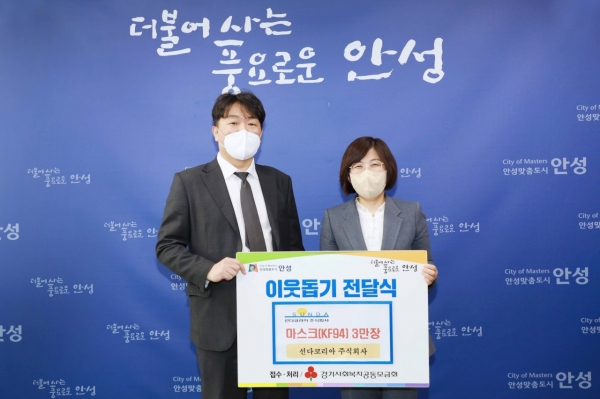 [충청뉴스큐] 선다코리아는 지난 23일 코로나19 예방을 위한 마스크 3만장을 안성시에 기탁했다.