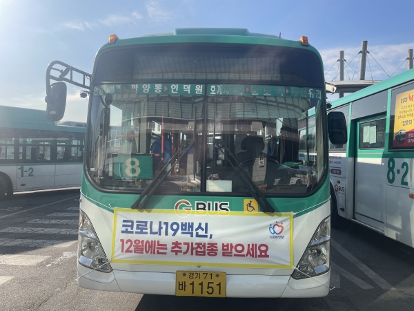 [충청뉴스큐] 안양시는 관내 운수업체인‘삼영운수’가 코로나19 백신 추가 및 3차 접종을 권유하는 현수막을 버스 전면에 부착해 운행 중이라고 27일 밝혔다.