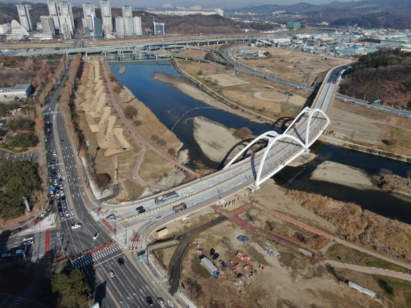 그 결과, 올해 홍도과선교 개량 공사 등 13개 사업을 성공적으로 완료했으며 특히 지난 12월 21일에는 대전산단 서측으로 진입하는 한샘대교를 개통하며 동·서 균형발전에 기여하기도 했다.