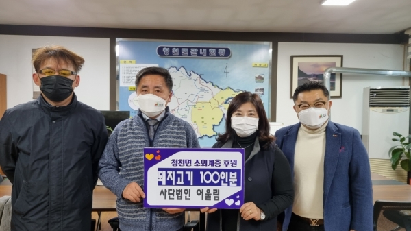 사단법인 어울림은 지난 27일 청천면을 방문해 소외계층을 위한 돈육을 기탁했다.