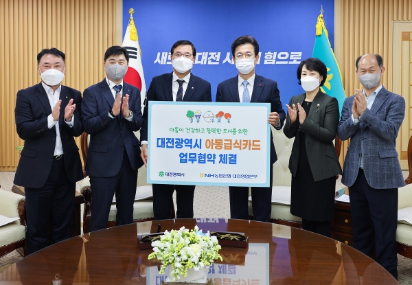 [충청뉴스큐] 대전시는 28일 2022년 아동급식카드사업의 원활한 추진을 위해 NH농협은행과‘대전시 아동급식카드 사업 업무협약’을 체결했다고 밝혔다.