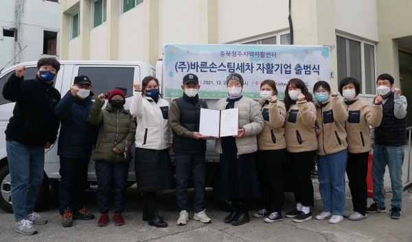 [충청뉴스큐] 청주지역자활센터는 28일 서원구 모충동에서 자활기업 ‘바른손스팀세차’ 창업식을 가졌다.
