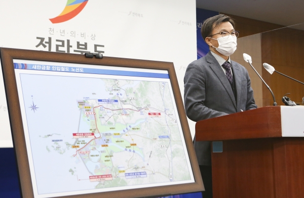 ‘새만금항 인입철도’는 국비 1조 2,953억원을 투입해 새만금 신항에서 새만금 국제공항을 거쳐 대야를 잇는 총 연장 47.6㎞ 규모의 여객·화물 병용 단선전철을 건설하는 사업으로 새만금 개발의 핵심SOC사업이다.