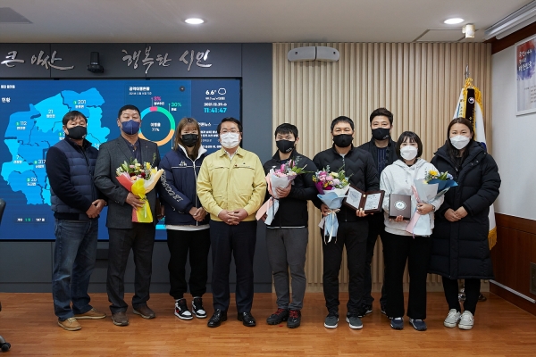 이날 코로나19 방역지침을 철저히 준수한 가운데 연말 아산시청 직장운동경기부를 떠나는 지도자에게는 감사패를 전달하고 2021년 한해 세계대회와 전국대회에서 우수한 성적을 거둬 아산시의 위상을 높이고 체육발전에 이바지한 우수선수에게 그동안의 노고에 감사를 표하는 뜻깊은 시간을 가졌다.