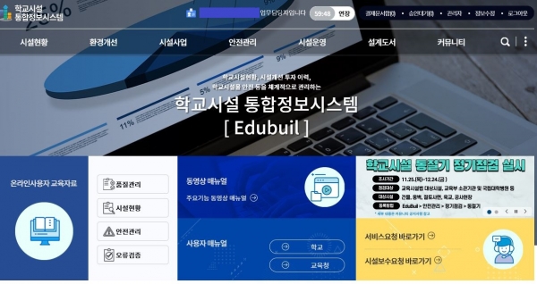 또 학교시설 유지·보수 관리시스템을 통해 시설보수 관련 기술 자문·상담을 제공하고 학교시설 관련 고충사항과 개선사항을 정책에 반영하기 위해 시설보수 데이터를 통합 관리해나갈 예정이다.