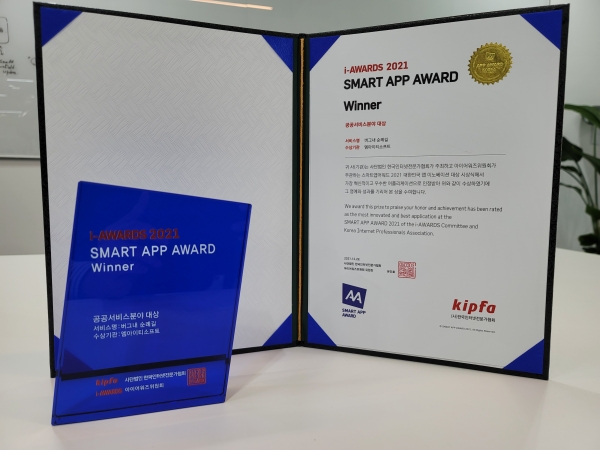 스마트 앱어워드는 한국인터넷전문가협회가 주관하는 우수 모바일 앱 시상식으로 국내 인터넷전문가 3,800명으로 구성된 평가위원단이 비주얼디자인, UI디자인, 기술, 콘텐츠, 서비스, 마케팅의 6개 부문에 대한 18개 평가지표를 토대로 우수한 앱을 선정한다.