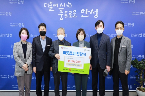 [충청뉴스큐] 안성산업단지관리공단은 지난 27일 안성시를 방문해 관내 어려운 이웃들을 위한 사랑의 쌀 10kg 20포(현금 84만원 상당)를 기탁했다.