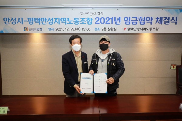 [충청뉴스큐] 안성시는 지난 29일 공무직 노조와 2021년 임금협약을 체결했다.