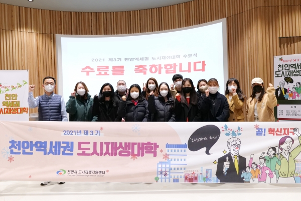 [충청뉴스큐] 천안시는 지난 30일 천안타운홀에서 2021년 천안역세권 도시재생대학 교육과정을 마무리하고 수료식을 진행했다고 밝혔다.