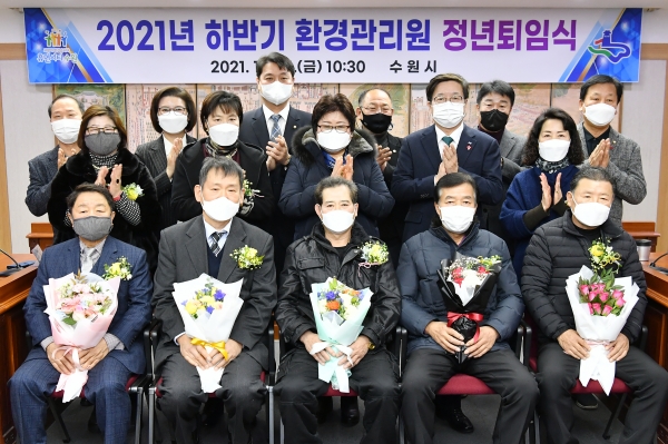 [충청뉴스큐] 수원시는 12월 31일 시청 상황실에서 하반기 환경관리원 정년퇴임식을 열었다.