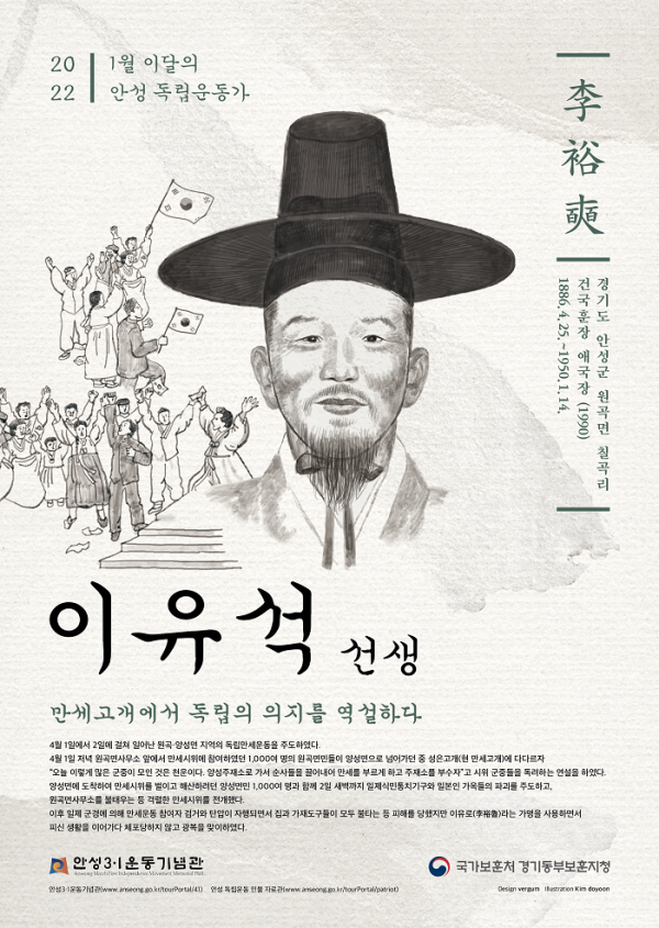 [충청뉴스큐] 안성시와 경기동부보훈지청이 공동으로 2022년 1월 ‘이달의 안성 독립운동가’로 이유석 선생을 선정했다.