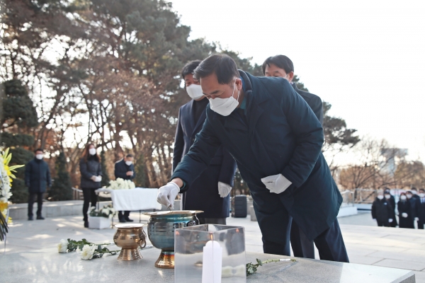 정장선 시장은 현충탑 참배 후 “올해 모든 일이 잘 되시길 바라고 특히 코로나로 인해서 어려움이 있는데 빨리 극복해서 희망과 전진하는 한 해가 되길 바란다”고 말했다.