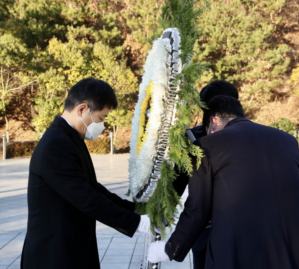 도교육청 간부들은 이날 시무식에 앞서 목포시 옥암동 부흥산 현충탑을 참배하고 2022년 새해 첫 업무에 임하는 각오를 다졌다.