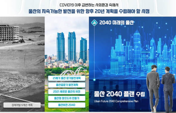울산시 관계자는 “오늘 발표한 2040년 울산의 새로운 미래 청사진과 함께 시행계획도 충실히 마련해 시민이 꿈꾸는 행복도시 울산을 만들기 위해 더욱 힘쓰겠다”고 밝혔다.