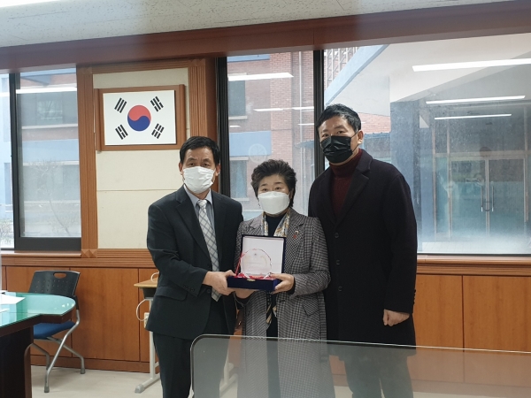이날 감사패 수여식은 관양고등학교 이중창교체공사 5억5천8백만원 예산 확보 등 학생들의 교육환경 개선과 학교 발전을 위한 심규순 위원장의 노력에 감사를 전하기 위해 정승희 관양고등학교장을 비롯한 학교 관계자들이 배석한 가운데 진행됐다.